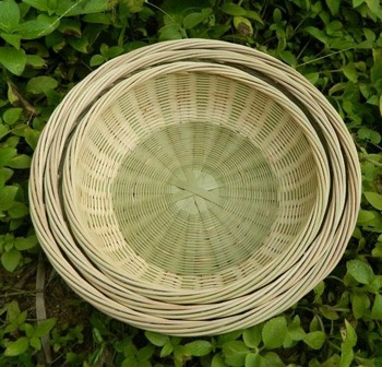 Handgemachte Bambus produkte Haushalt Runde Flach boden Obst Obst Geschirr korb Solid Durable Bamboo Basket Großhandel