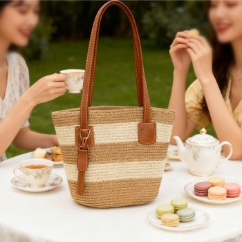Panier de rangement portable à main à épaule unique pour femmes - Style français, tissé en papier